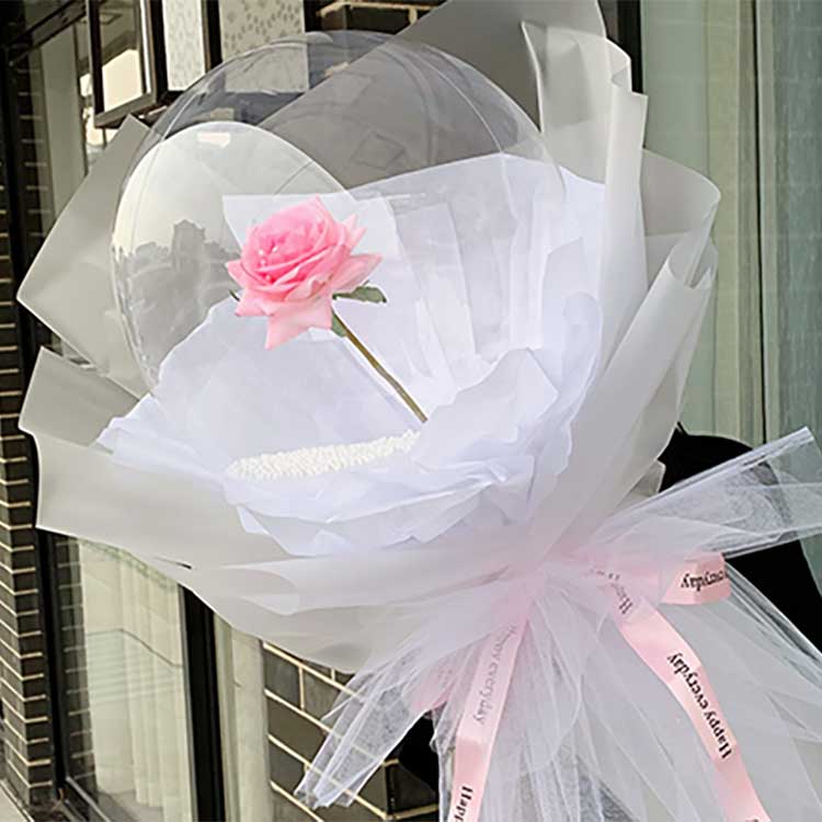 مقاس:النسخة الراقية يبلغ طولها حوالي 50 سم مع عصا بطول 35 سم؛ يستخدم الإصدار المتوسط والقياسي عصا بطول 70 سم ويبلغ حجمها الإجمالي حوالي 80 سم. النسخة الراقية تتضمن المزيدمُكَمِّلات:3 طبقات من المناديل الورقية 3 طبقات من ورق التغليف الزهري 1 طبقة من الشاش. يتضمن الإصدار متوسط المدى: طبقة واحدة من المناديل الورقية، طبقة واحدة من ورق التغليف، طبقة واحدة من الشاش. النسخة القياسيةيشمل:طبقة واحدة من بالونات بوبو على شكل قلب من الشاش.