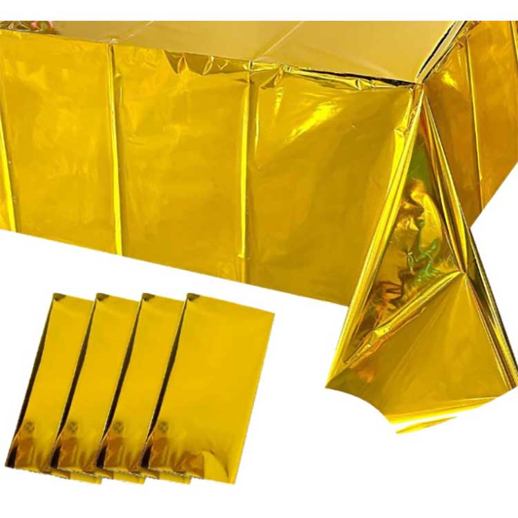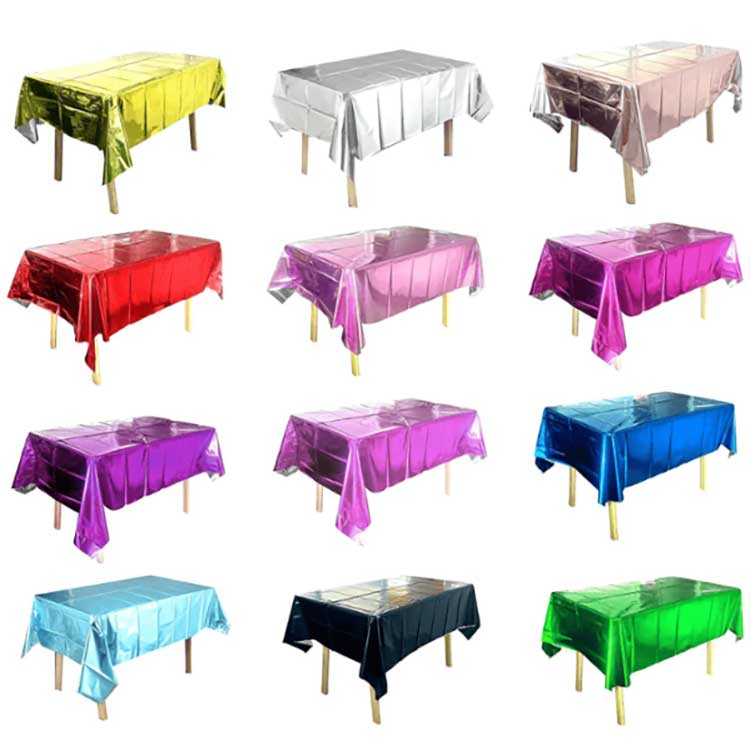 يستخدم غطاء الطاولة الفويل لإعداد الطاولة في الاحتفالات المختلفة. يمكن أن يمنع سطح الطاولة من البقع أو الخدوش أو التلف، ويمكن للألوان والأنماط أيضًا أن تجلب تأثيرات زخرفية. وهي مصنوعة من فيلم خاص مطلي بالألمنيوم PET. أثناء عملية التصنيع، استخدمنا تقنية الطلاء بالفراغ لضمان القوة والمتانة والأداء المضاد للشيخوخة لغطاء الطاولة. علاوة على ذلك، يمكن لجزيئاتها عالية الكثافة أن تمنع بشكل فعال اختراق الحساء أو بقع الزيت، كما أنها تتمتع بوظيفة مقاومة للماء.
