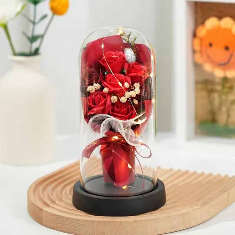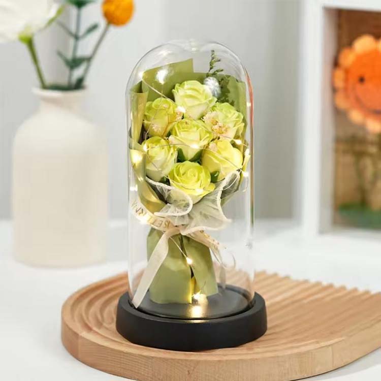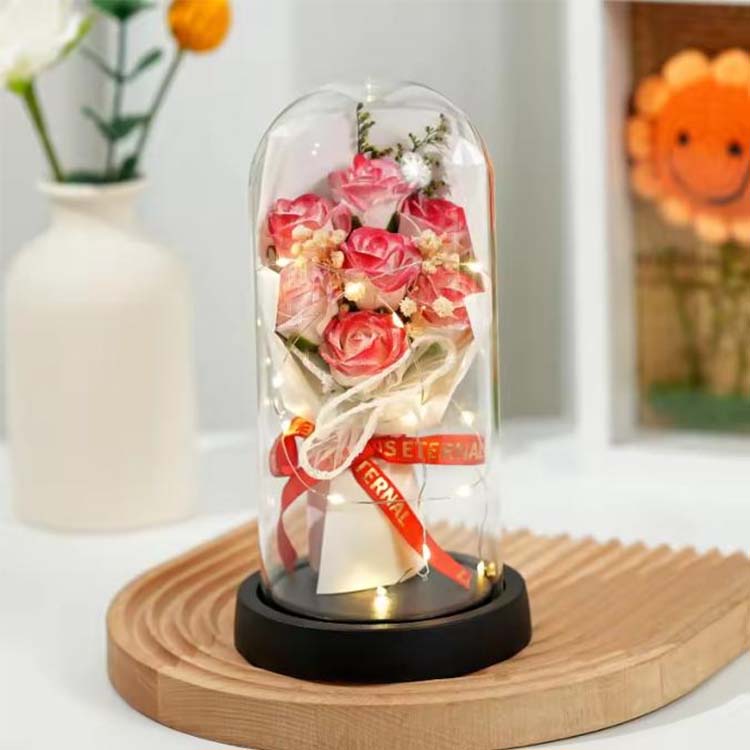 تجمع باقة الورد الصابونية ذات القبة الزجاجية مع صندوق هدايا LED بين الوظيفة العملية والمعنى العاطفي، مما يجعلها هدية تستحق الاعتزاز بها. سواء كنت تضيف لمسة رومانسية إلى منزلك أو ترسل هدية خاصة لشخص مميز، فهي هدية دافئة لا تنسى.