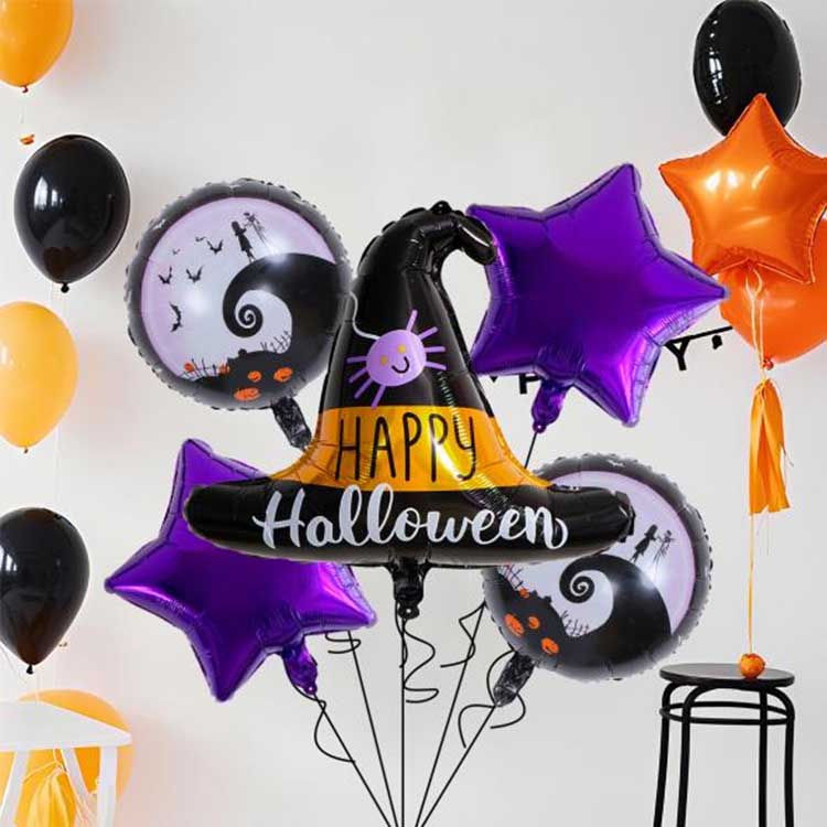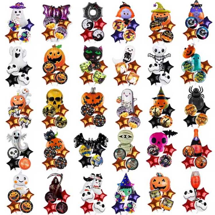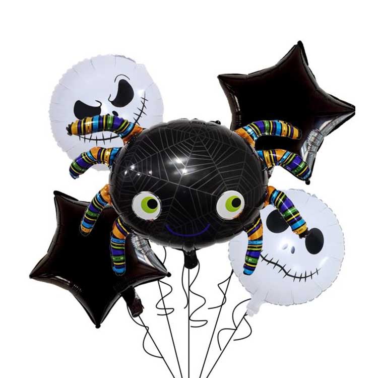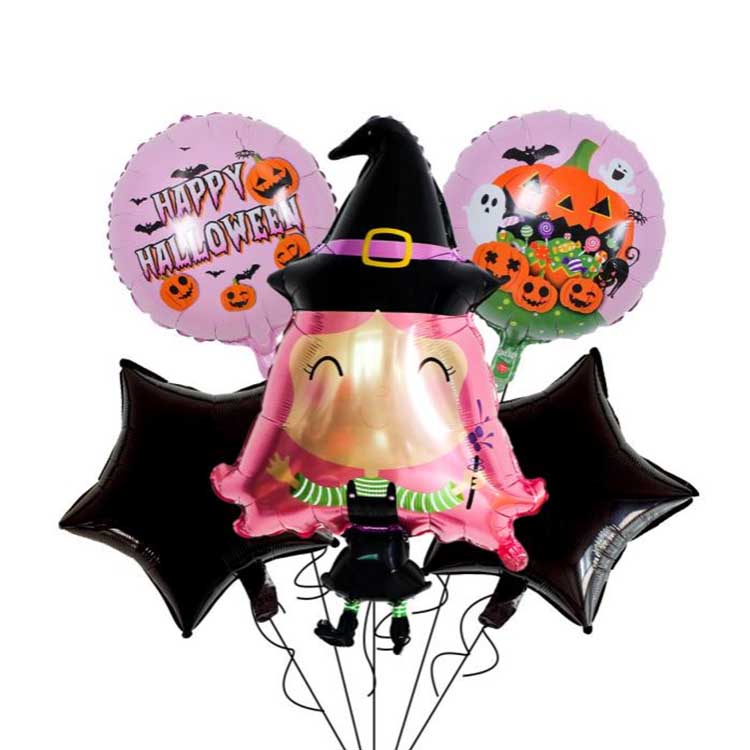 مجموعة الهالوين المكونة من خمس قطع عبارة عن مجموعة بالونات مصممة خصيصًا لعيد الهالوين. وتتكون عادةً من بالونات فويل وبالونات لاتكس وغيرها من الملحقات. تتضمن خمسة أنواع من البالونات إجمالاً! تتميز كل مجموعة بنمط أو شخصية تتوافق تمامًا مع موضوع الهالوين. مثالية لتزيين الهالوين، يمكنك حتى ملء البالونات بالهيليوم لجعلها تطفو! هذا يزيد من حدة الجو الغامض للهالوين!