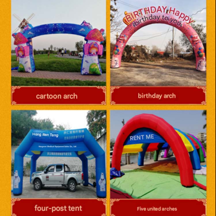 مصنوعة من مواد متينة ومتوفرة في مجموعة متنوعة من الأشكال والألوان ، تتضخم هذه الأقواس القابلة للنفخ بسرعة بمضخة وتأتي مع أكياس الرمل والحبال لسهولة التثبيت. يمكن طباعتها على علامات كبيرة أو مساحات أحداث وقابلة لإعادة الاستخدام والاقتصاد. إنها مثالية للفتحات الكبرى والمعارض والمناسبات المدرسية والحفلات.