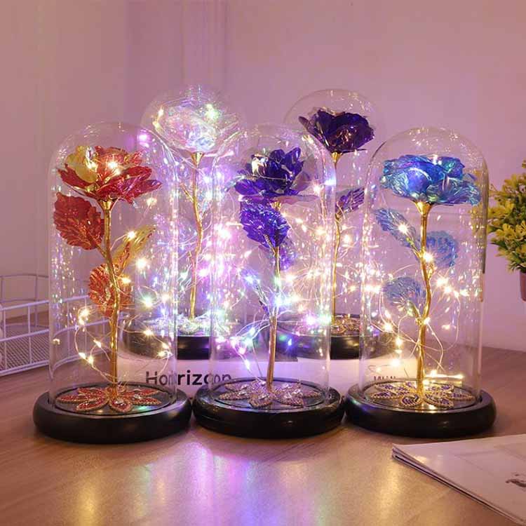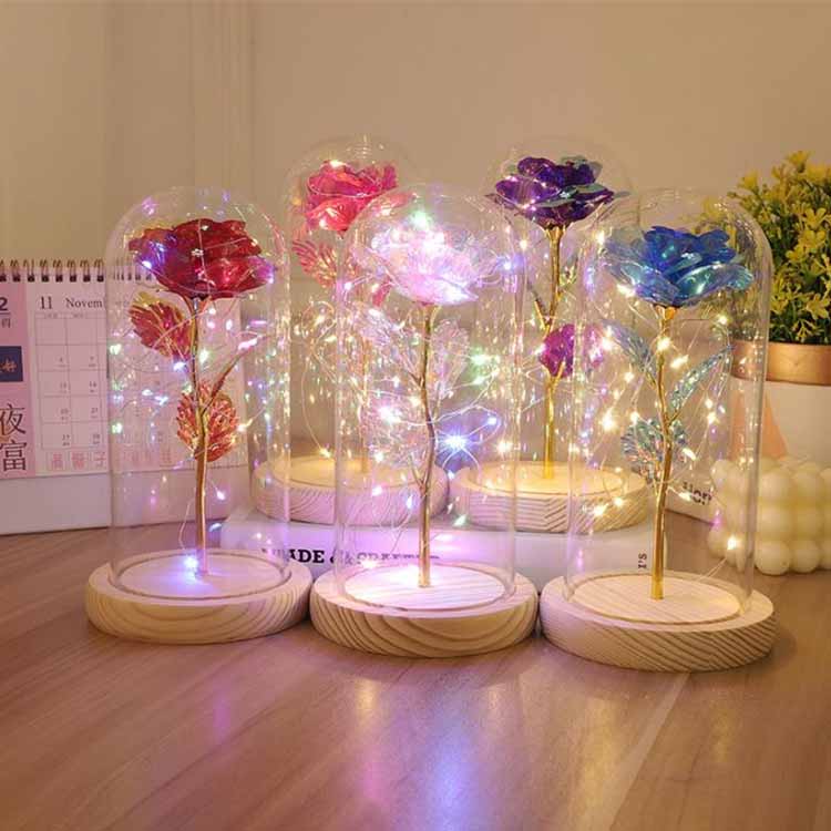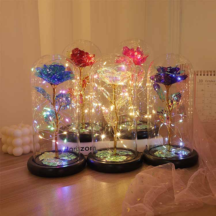 ارتفع زجاج LED 24K داخل الغلاف الواقي، لدينا العديد من الدمى والألعاب. يمكن للعملاء اختيار الدمى المفضلة لديهم ولون الزهور التي يحبونها. يمكننا تخصيصها وفقا لمتطلباتك.