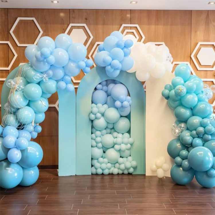 التخصيص: يمكن زيادة أو تقليل عدد البالونات حسب الموقف (على سبيل المثال، 10-15 بالونة لمنطقة صغيرة، 30 أو أكثر لمنطقة كبيرة). ويمكن أيضًا توسيعها باستخدام عناصر محيطية أخرى (على سبيل المثال، ستائر التول الزرقاء، ومفارش المائدة ذات الطابع المحيطي).