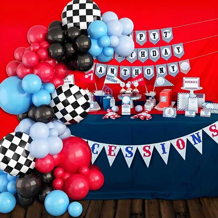 مجموعة تزيين قوس البالونات ذات موضوع السباق هي حل زخرفي مصمم خصيصًا للحفلات والمناسبات وحفلات أعياد الميلاد. يتمحور هذا المنتج حول موضوع سباق السيارات. ومن خلال إضافة بالونات اللاتكس باللون الأسود والفضي والأزرق والأحمر، بالإضافة إلى نماذج السيارات وإكسسوارات السباق، يتم تحقيق النتيجة النهائية المتمثلة في تشكيل شكل قوس كديكور، مما يخلق جوًا عاطفيًا ومبهجًا لمكان الحدث.