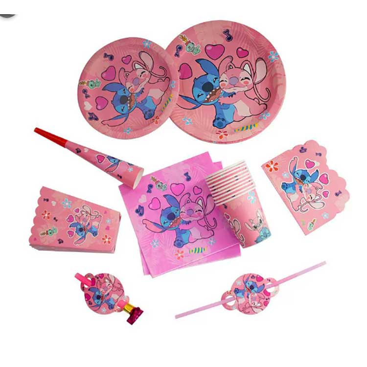 مجموعة أطباق ستيتش التي تستخدم لمرة واحدة هي منتج مصنوع بعناية من العلامة التجارية للمعجبين، وهو إضافة جميلة بشكل مذهل لحفلة عيد ميلادك أو تجمع عائلتك. فهو يجمع بين الأداء الوظيفي والراحة والجماليات، مما يعزز أجواء الحدث الخاص بك بشكل كبير.