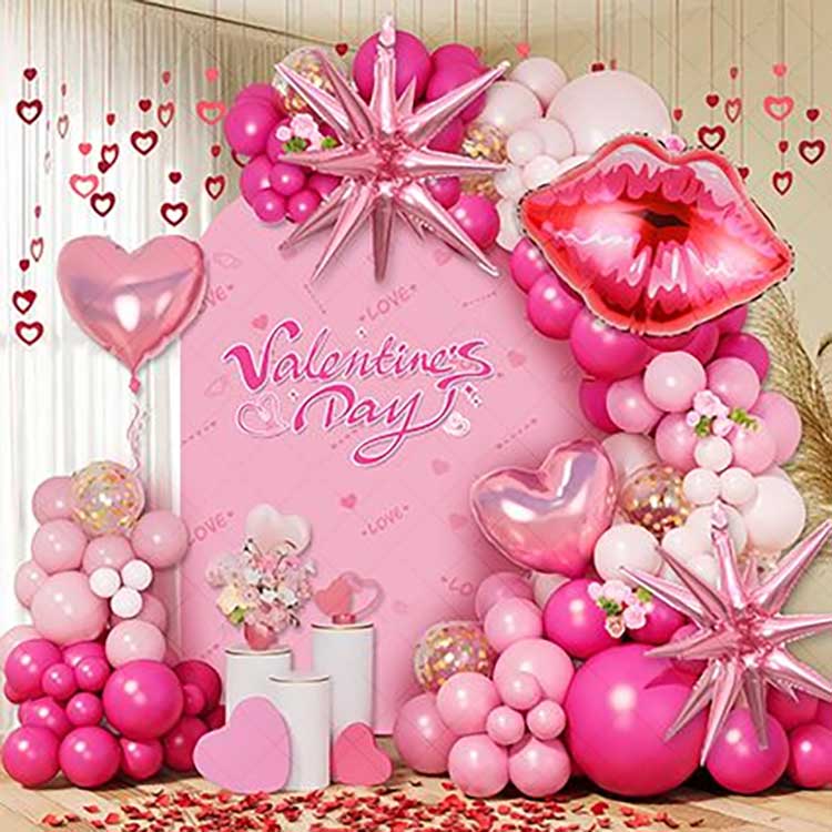 تتضمن مجموعة إكليل بالونات عيد الحب بالونات لاتكس صديقة للبيئة وبالونات فويل نابضة بالحياة مصممة للاستخدام الطويل. تحتوي على 50-80 بالونة لاتكس بأحجام متنوعة، بالإضافة إلى 5-8 زينة على شكل قلب/حروف من رقائق الفويل. تتكون مجموعة DIY من سلاسل البالونات ونقاط لاصقة وشريط وتعليمات. سهلة التجميع للاستخدام الداخلي والخارجي.
